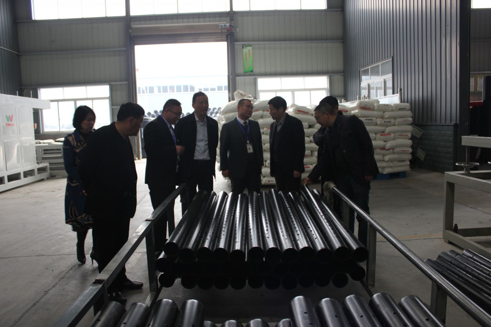 2019年3月30日,沙洋縣副縣長李旭祥及史德洪董事長一行到湖北萬錦科技有限公司視察和指導工作,在公司董事長夏祥義同志、監(jiān)事會吳國安同志、總助嚴常軍同志等陪同帶領下,參觀了我公司的波紋管車間及貨場等,并觀看公司宣傳片。同時,聽取董事長夏祥義同志對公司發(fā)展歷程、業(yè)務范圍及戰(zhàn)略規(guī)劃的具體情況的講解。