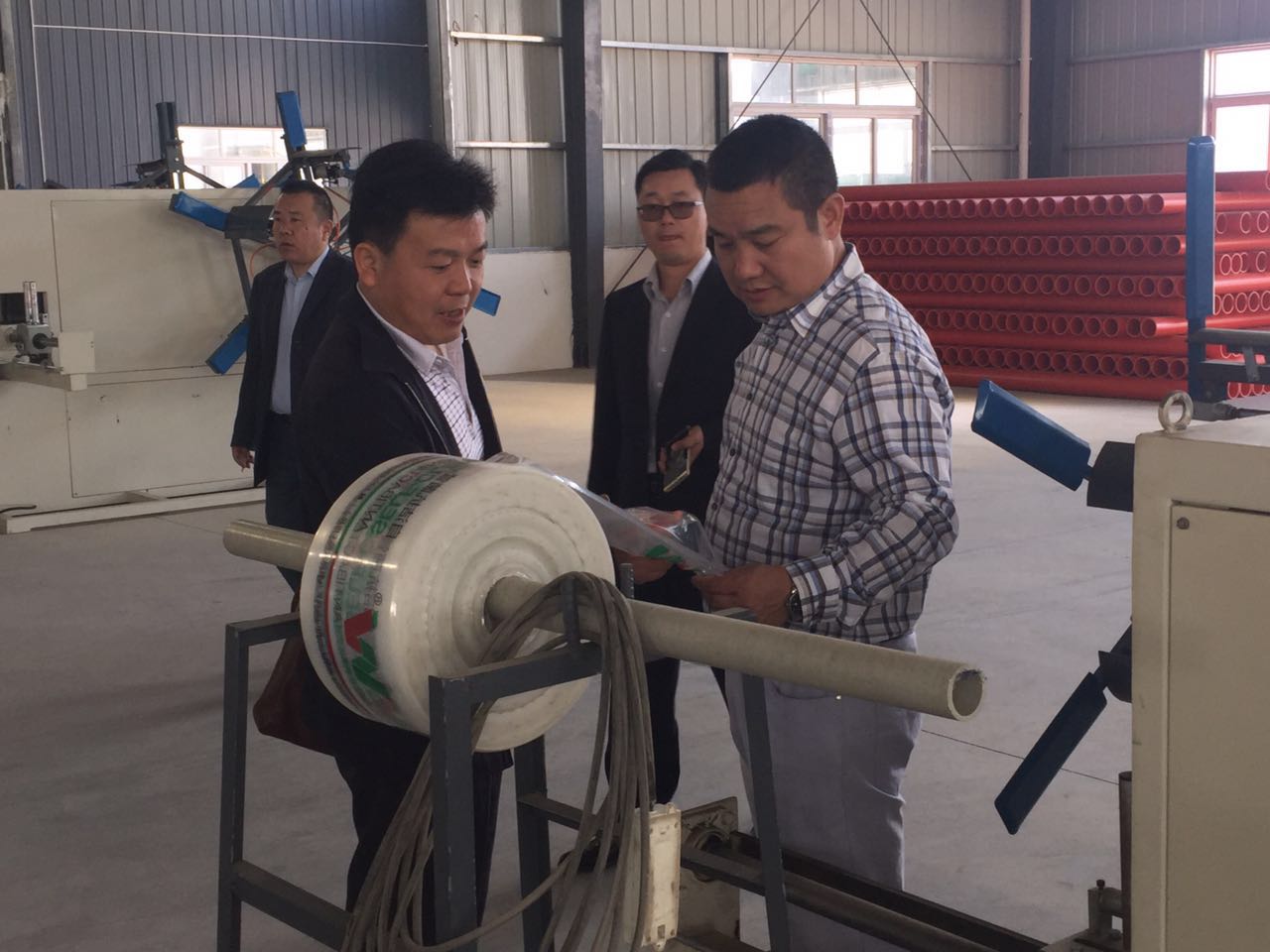 2017年4月29日,越南湖北商會宋會長一行4個在董事長夏祥義的陪同下視察了萬錦科技,宋會長等人在夏總陪同下參觀了公司所有車間,夏總向宋會長和商會領(lǐng)導(dǎo)們詳細(xì)介紹了公司的各類產(chǎn)品。